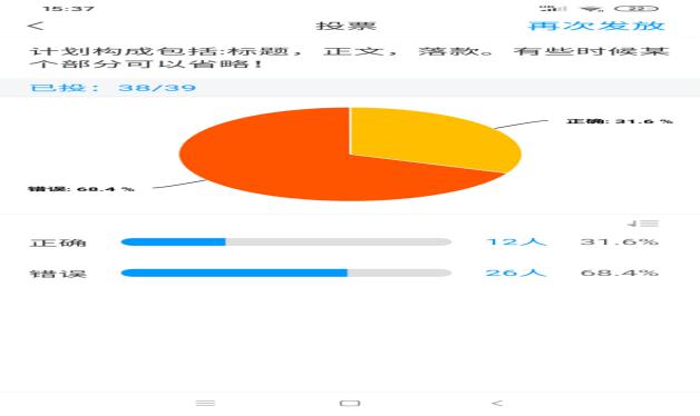 (二)教学分享设计。利用学习通签到,时间可设置为一个课时,以错开在线上课高峰期。因此,教师发出签到任务必须早于高峰期,才能保证签到顺利;教师一定要提前下发学生的学习任务单,让学生有足够的时间完成教师推荐学习资源的预习,并保证有充分时间完成各项学习任务。因为,线上教学时间有限,但是资源非常丰富,学生可以更多地享受各高校优质教学资源;课上采取“选人”“抢答”“投票”“讨论”等多种学习互动方式,“抢答”可以激发学生学习的积极性,“选人”既可以适时检测学生的学习效果,也可以顺便做课堂考勤;课后教师及时批阅作业,并第一时间反馈评语给学生,让学生感受到教师的关注和重视;教师在授课过程中,适时进行润物细无声的课程思政教育。