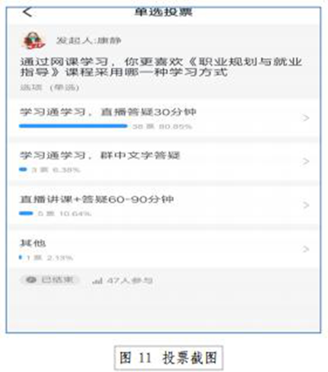 (四)直播答疑结束后,进行投票表决,根据学生的投票意见反馈,及时调整教学活动:
