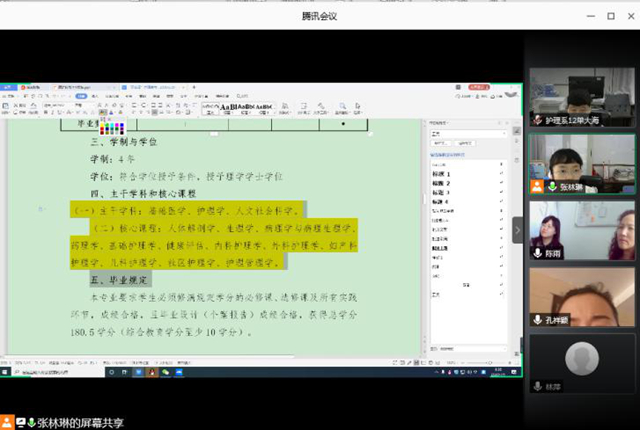 在论证过程中,各位专家对护理学专业2020版人才培养方案中的培养目标、毕业要求、课程设置、课程矩阵等内容逐一进行论证并给出相应意见建议