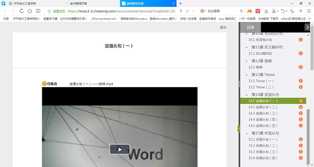 (二)依据学情,整合教学资源。首先,教师利用学习通中吉林农业大学张姝老师的《英语语法》课程示范教学包来建课,该示范教学包中含有丰富的视频讲解资源和针对各个知识点的题库,有助于学生以工具书查阅的方式自主学习。