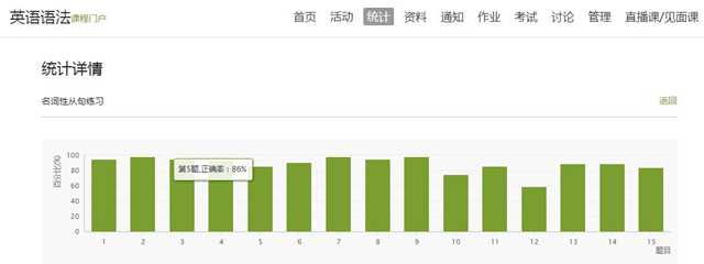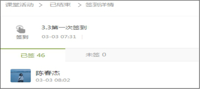 (二)课中阶段。一是不定时发布测试,检验学生学习效果。针对有时会出现网络延迟情况,教师提前半小时组织学生签到,提前15分钟组织学生课前测试,课上不定时进行签到和知识点小测试,不仅能够防止学生溜号,而且能够检验学生的学习效果。