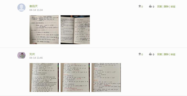 二是激励学生发声,表达心中所想。教师布置的重要作业之一,就是要求学生积极回复各种主题讨论——提问的、造句的、唱歌的、吐糟的,鼓励学生“敢想敢发声”,从中锻炼知其然并知其所以然。每周,师生共同选出优秀的帖子在学习通群聊中展示,由教师给予一定的加分奖励;对未及时完成任务的学生进行提醒和批评,并持续关注学生的学习动态。