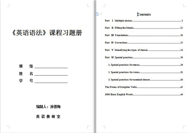 其次,教师根据学生实际能力和水平,编制语法讲义和习题册。讲义内容概括性很强,有利于学生快速把握英语语法脉络;习题册中的习题均是针对学生在英语运用过程中的各种常见错误设计的,有助于学生避免犯中式英语的错误。