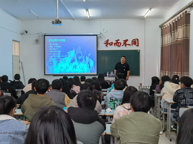 讲座在一号教学区1402教室举办,动画201班全体同学参加。陆经理用自己的设计作品为同学们介绍了主要的几款设计风格以及高模、低模和贴图的含义讲解游戏制作流程和游戏公司岗位。最后为同学们展示了许多游戏人物和场景,并让同学们凭借记忆展开绘画,在交流中他谈到无论处在什么岗位,都要好好工作,只有努力的人才能有美好生活。