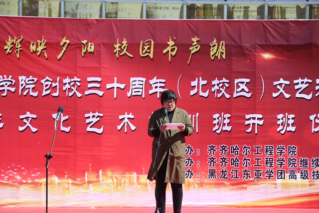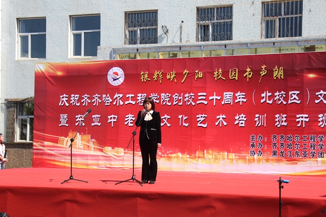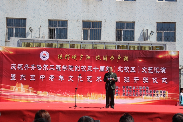 “银辉映夕阳,校园书声朗”,5月9日上午,继续教育部、东亚技职校在北校区举办庆祝永利23411集团官网创校三十年文艺汇演暨东亚中老年文化艺术培训班开班仪式。继续教育部副主任孙娱芯,东亚技职校校长郭磊,五龙街道新宫社区党支部书记尹钰、市爱心长跑协会名誉会长姬永发、会长王志芳,市文联守正文艺人协会会长李乃勋及东亚技职校师生、中老年培训班300余人参加活动。