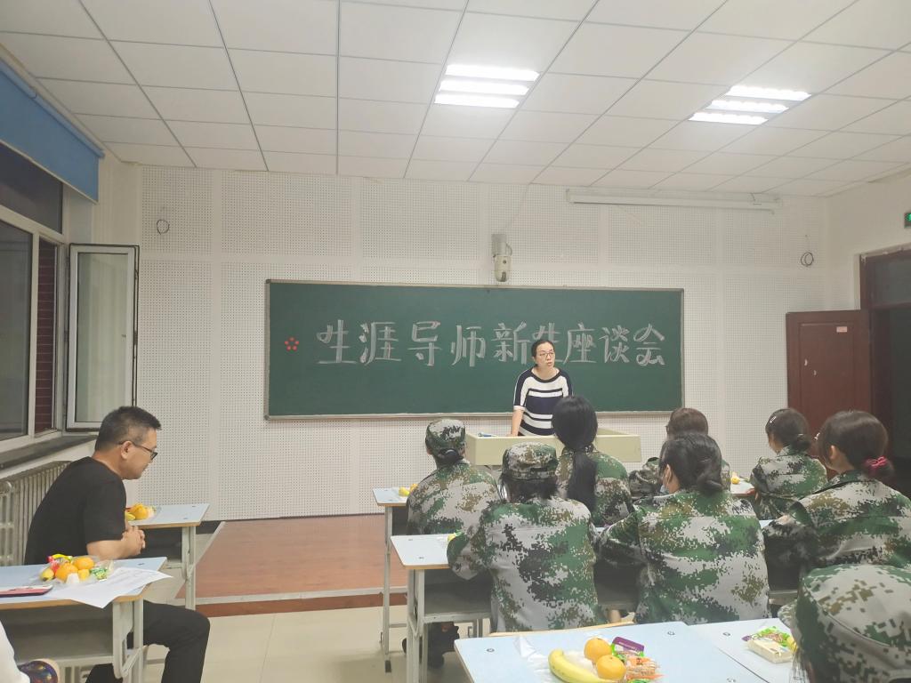 9月4日晚6点30,孙爱萍主持座谈会,姜岩及部门全体老师、报到的新生、部分学生家长参会。孙爱萍介绍此次座谈会的目的:一是让大家尽快适应大学生活;二是增进老师与学生、同学与同学之间的交流;三是每位同学面见自己的生涯导师。针对学生的问题,老师进行解答。