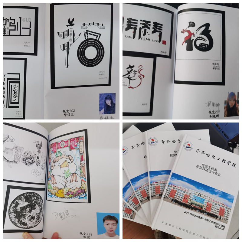 12月11日,信息工程系视觉传达设计专业依托《字体设计》《插画设计》两门课程,制作了五本作品集,作品集里面包括了专业全体学生有代表性的三次项目作业。专业长姜岩组织专业教师王昀碧、冯佳修、石祥瑞带领学生分成两组,整理了两门课程的全部作品,通过筛选,选择出具有代表性的优秀作品排版,装订成册,同学们在作品页签下自己的名字。入册作品均为学校或企业真实完成的项目,既体现了学生的专业水平,也体现了教师传授知识取得的成果。通过作品集的制作,学生对本学期的项目成果进行了回顾,激发了他们的学习兴趣。