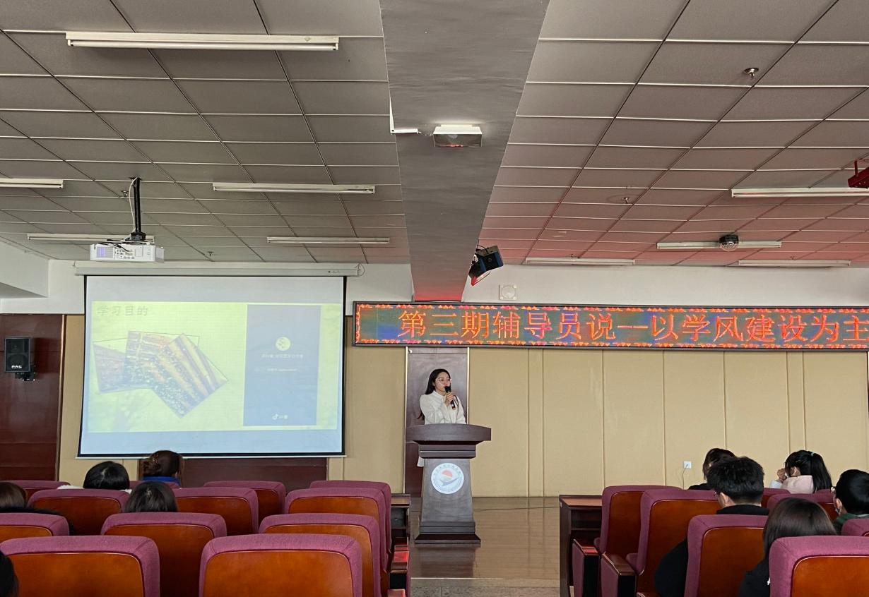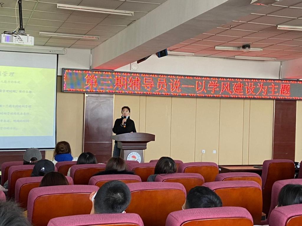 12月10日,在图书馆501学生工作处开展了以学风建设为主题的“第三期辅导员说”活动,来自五个系的辅导员进行了精彩的“辅导员说”,学校100余名学生参加。