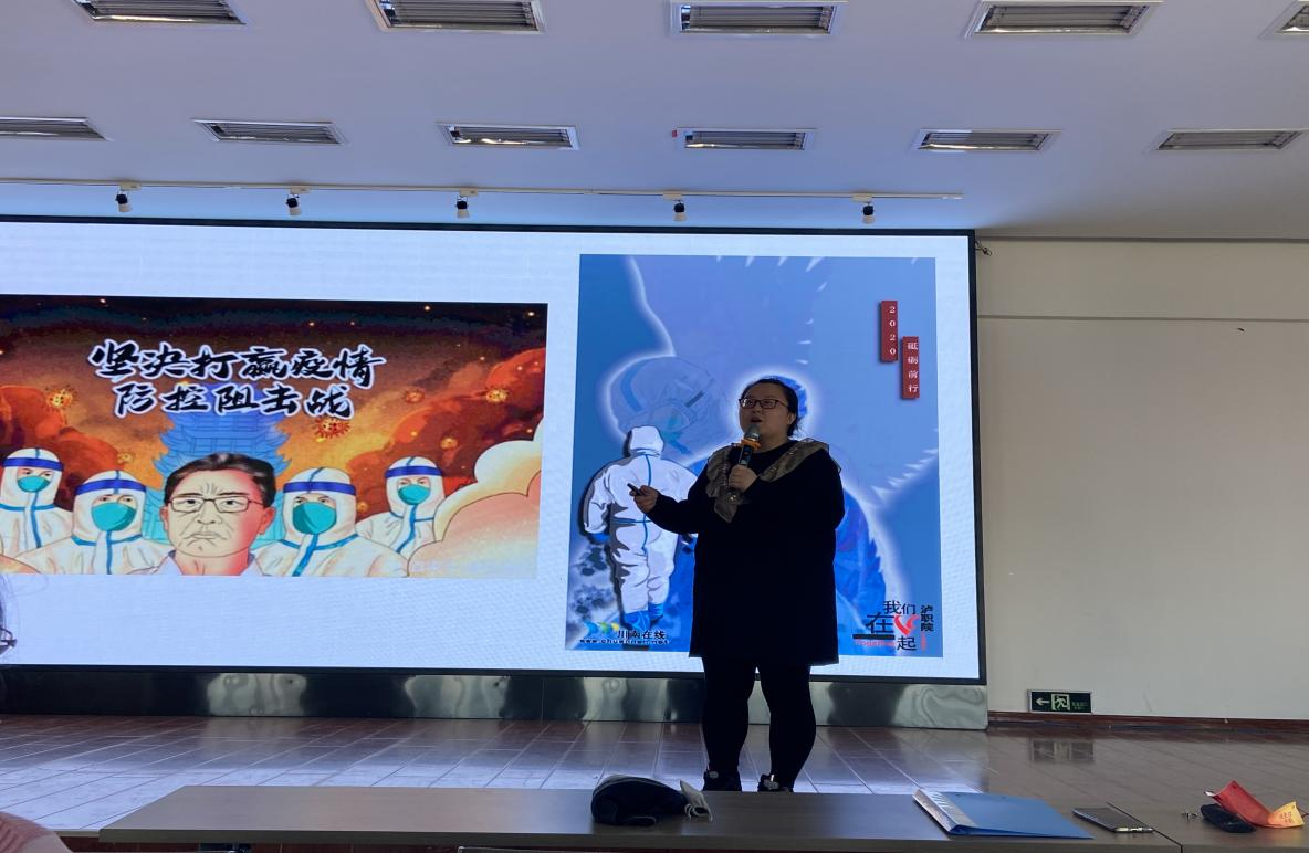 管理工程系王丽伟老师通过新闻实例,讲述了管理工程系会计17级的李春晓在疫情防控期“冲锋陷阵”,负重前行,默默奉献,甘当“逆行者”的事迹。王老师表示,李春晓在这场没有硝烟的战争中,传递了正能量,用实际行动展现了当代青年的责任与担当。同学们纷纷表示,李春晓是当之无愧的青年榜样,要向她学习,成为有理想、有担当的青年。