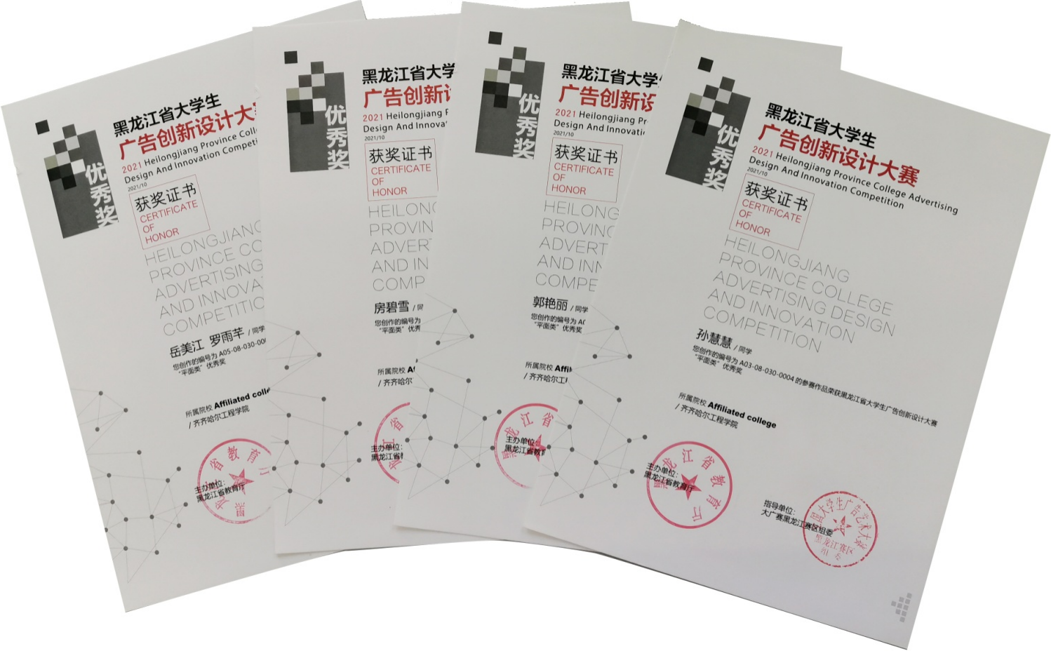 近日,全国第十三届大学生广告艺术设计大赛奖项揭晓,永利信息工程系视觉2019级孙慧慧、房碧雪和视觉2020级郭艳丽、岳美江、罗雨芊五名同学的作品入围省赛并获得优秀奖。