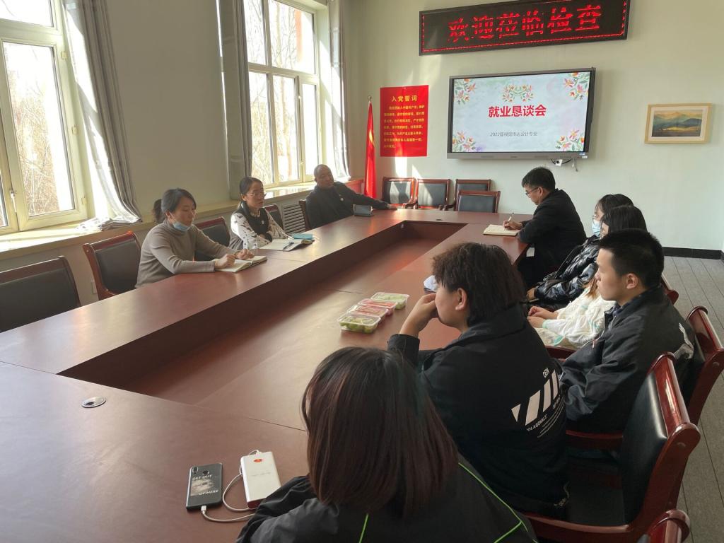 恳谈会首先由未就业的学生汇报就业打算、就业进展和就业困难。刘春媛在听取了大家的汇报后,肯定了同学们的就业积极性,并详细分析了全国和我省的就业形势,针对同学们的就业打算,分析了就业方向。孙晓芳要求同学们要把就业当作迫在眉睫的头等大事来抓,要一鼓作气攻坚克难,不要“再而衰,三而竭”,要积极主动,不要“躺平”,并讲解了参军、直招军士相关政策。各专业长、辅导员、生涯导师也在会上结合自身就业求职经历与现场同学进行了分享。