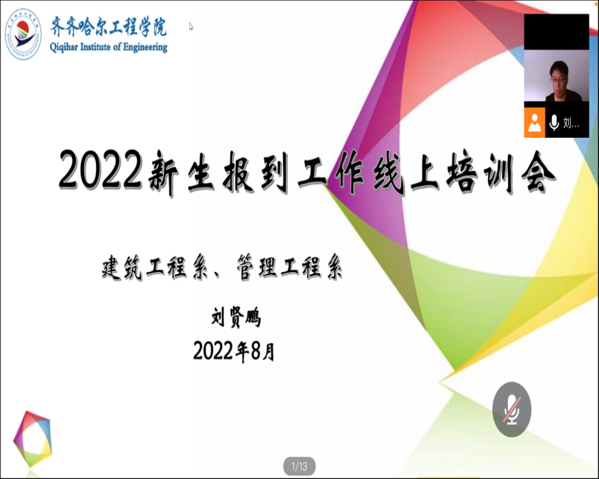 为确保秋季学期开学迎新工作顺利开展,8月19日,建筑工程系、管理工程系学生工作副主任刘贤鹏在腾讯会议上组织召开了2022级新生报到工作线上培训。两系辅导员、生涯导师、学长、志愿者共计91人参加。