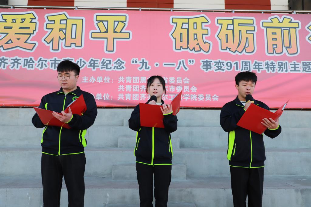 学生代表校团委副书记孙宇发言,表示作为新时代的大学生,要勤学好问,奋发向上,以闯干之劲谱写青春绚丽篇章,把责任举过头顶,把使命扛在肩上,敢于尝试、勇于拼搏,以更加坚定的自信和更加昂扬的斗志为党的二十大献礼。
