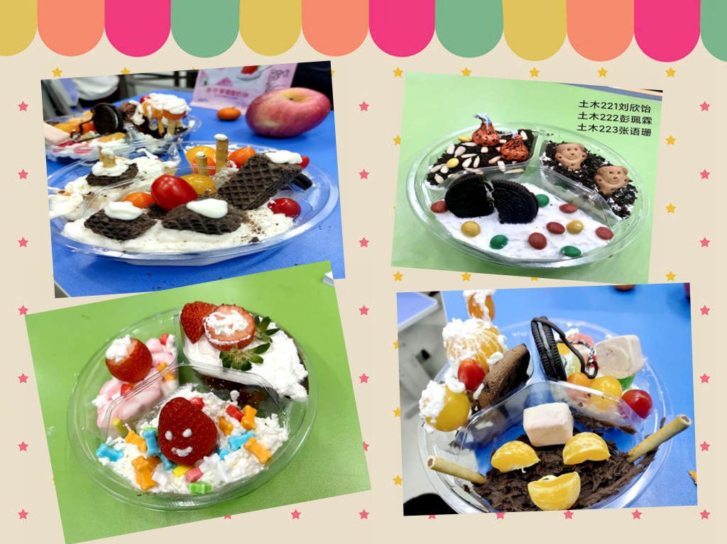 比赛以学生自行组队或个人参赛的形式,运用巧克力酱及奶油进行花样创作,可自带食材对作品进行装饰,完成作品后拍照上传至活动群中由大家进行点评,并投票选出的获奖作品进行展示。