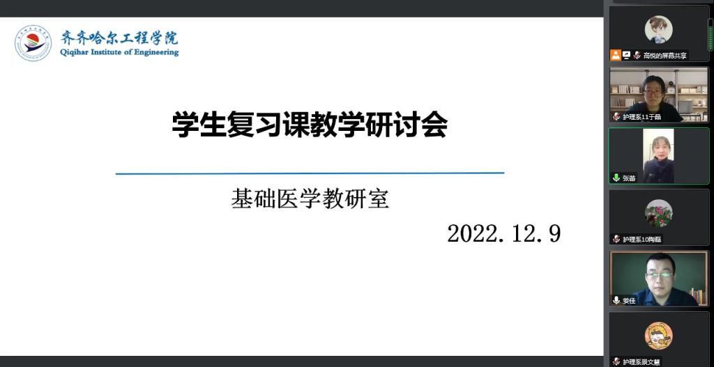 12月9日下午,健康与护理系基础医学教研室线上召开学生复习课教学研讨会。基础医学教研室全体教师参加,张蕾老师主持。