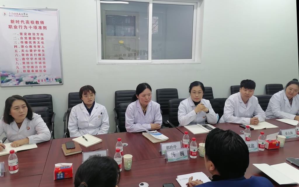 2月28日下午,健康与护理系负责人郭玲玲、教学副主任张林琳、实验中心主任张晓波、专业负责人毕茎娜、单大海,专业助理孙强、孙晓雪在一号教学区2104会议室与附属建华医院代表就建设健康产业学院事宜再次进行洽谈。