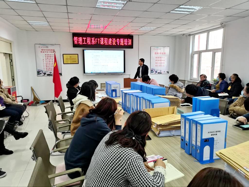 3月14日,管理工程系全体教师在二号教学区2209室召开“FT课程建设专题”培训会。该系电子商务专业教授刘玉洁作专题培训。