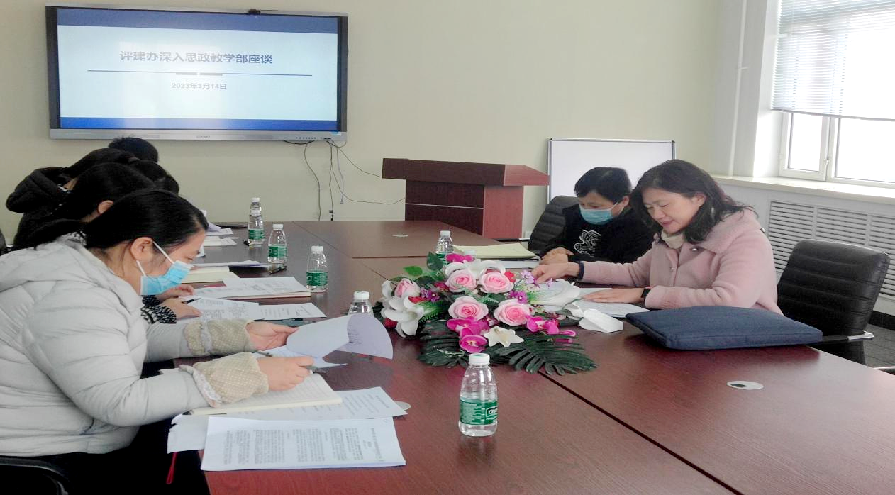 3月14日,评建办蒋春艳、任志新教授深入思政教学部就审核评估推进工作开展座谈。思政教学部负责人赵婷婷、副主任李娜以及组织部副部长张苗、宣传部副部长王倩、学生工作处负责人姜宏伟参会。