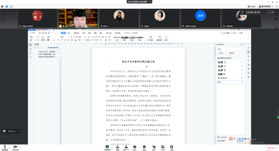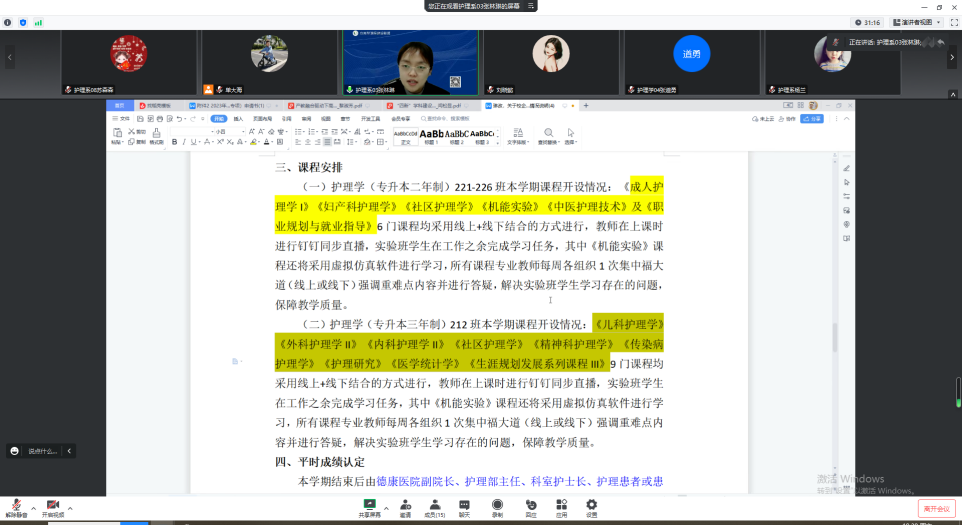 4月8日晚,健康与护理系护理学(专升本)专业线上召开校企共育实验班教学及管理会议。系负责人郭玲玲、教学工作副主任张林琳、学生工作副主任姜宏伟及专升本专业任课教师参加,专业负责人单大海主持。