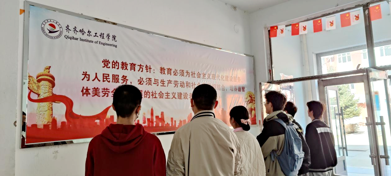 图书馆会议室前展板上书有“三问”与“三答”,即“为谁培养人”“教育必须为社会主义现代化建设服务、为人民服务”;“怎样培养人”“必须与生产劳动和社会实践相结合”;“培养什么人”“培养德智体美劳全面发展的社会主义建设者和接班人”。