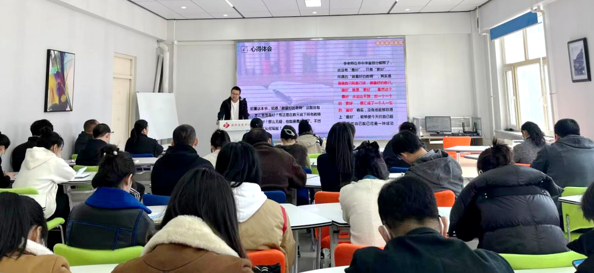 机电工程系于海龙老师作《做最好的老师》的读书分享,首先于老师对作者李镇西进行了介绍;随后对书中最好的老师需要“童心、爱心、责任心”进行了分享,并对如何能做一名好老师进行了思考;最后,与大家分享书中的镇西小语“每天都不是最好,甚至每天都有遗憾,但每天都这样自己和自己比,坚持不懈,我便不断地向‘最好的教师’的境界靠近。”
