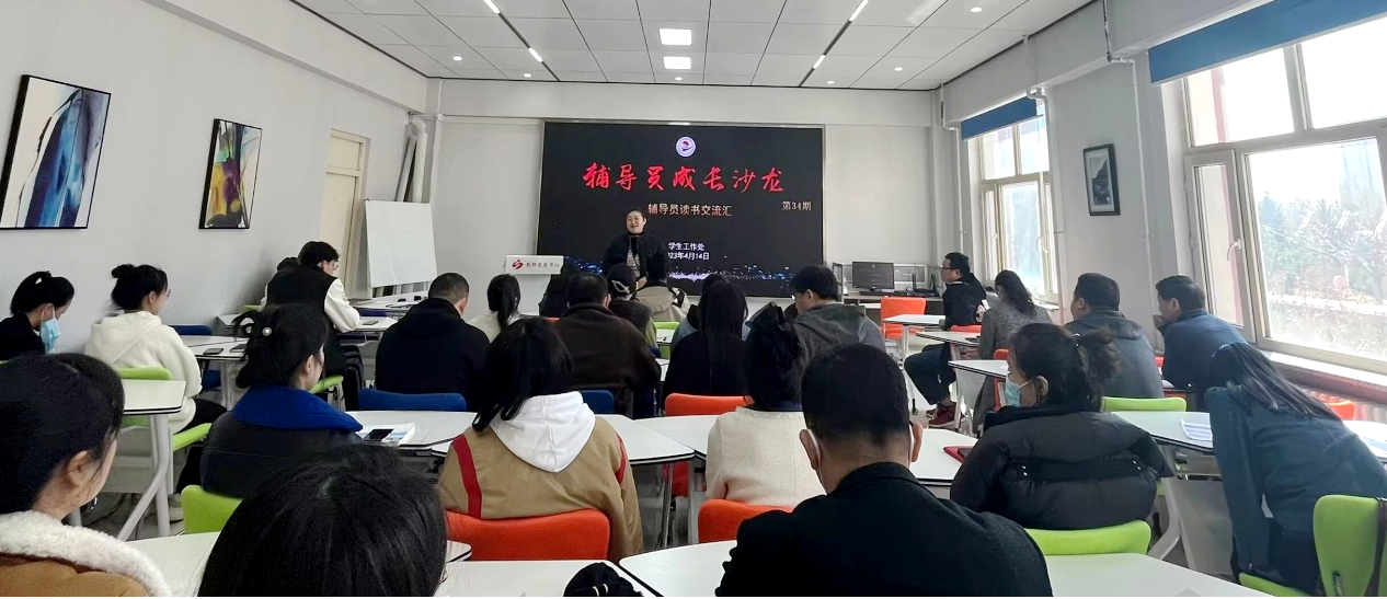 4月14日上午,第34期辅导员成长沙龙——辅导员读书交流汇在二号教学区2102会议室举办,本期沙龙内容针对每月辅导员读书情况开展。各系副主任及学生工作人员40余人参加,学生工作处副处长郭明敬主持。