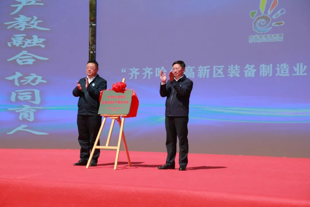 市教育局党组书记、局长姜林,高新区党工委副书记、常务副主任冯万里为“齐齐哈尔高新区装备制造业产教联合体”揭牌。
