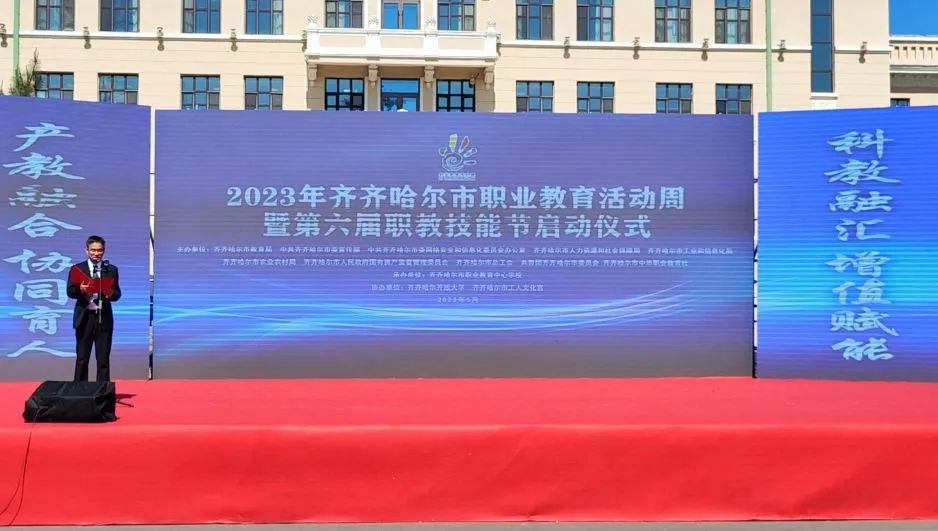 5月22日,齐齐哈尔市职业教育活动周暨第六届职教技能节启动仪式在工人文化宫广场举行。齐齐哈尔市教育局三级调研员王宽主持仪式。学校常务副校长孙娱芯、副校长高鹏带领师生代表参加活动。