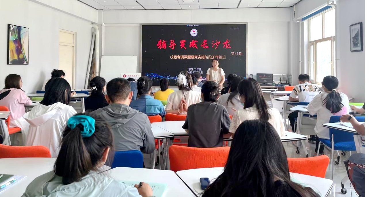 7月7日上午,学校第41期辅导员成长沙龙在二号教学区2102会议室举行。此次沙龙面向学工专项课题负责人及成员,采取线上线下相结合的方式进行,邀请科研处宋庆永老师为大家讲解了校级专项课题(学生工作专项)研究实施阶段工作推进的要求及相关内容。