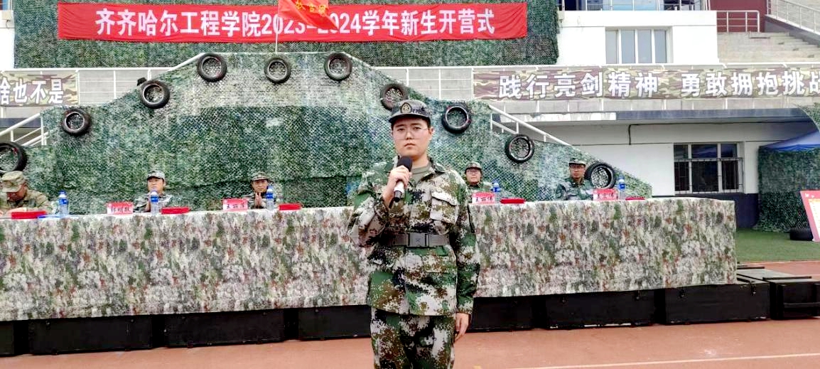 新生代表、机械设计制造与自动化专业孙瑀泽发言,表达了自己的期待和信心,对各位领导和教官对本次训练的付出表示感谢。