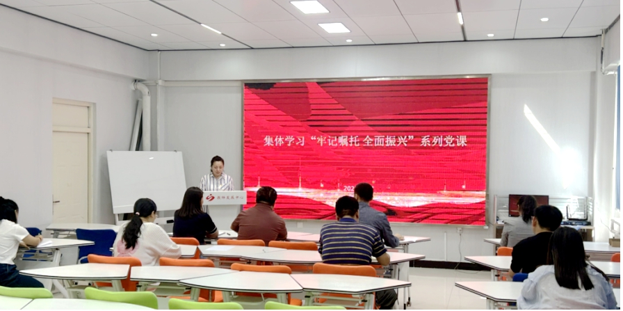 近日,学校机关第三党支部组织支部全体党员、积极分子以及民主党派人士开展“牢记嘱托 全面振兴”系列党课,题目是《沿着习近平总书记在龙江考察调研足迹》。支部宣传委员逯娅娜主持。