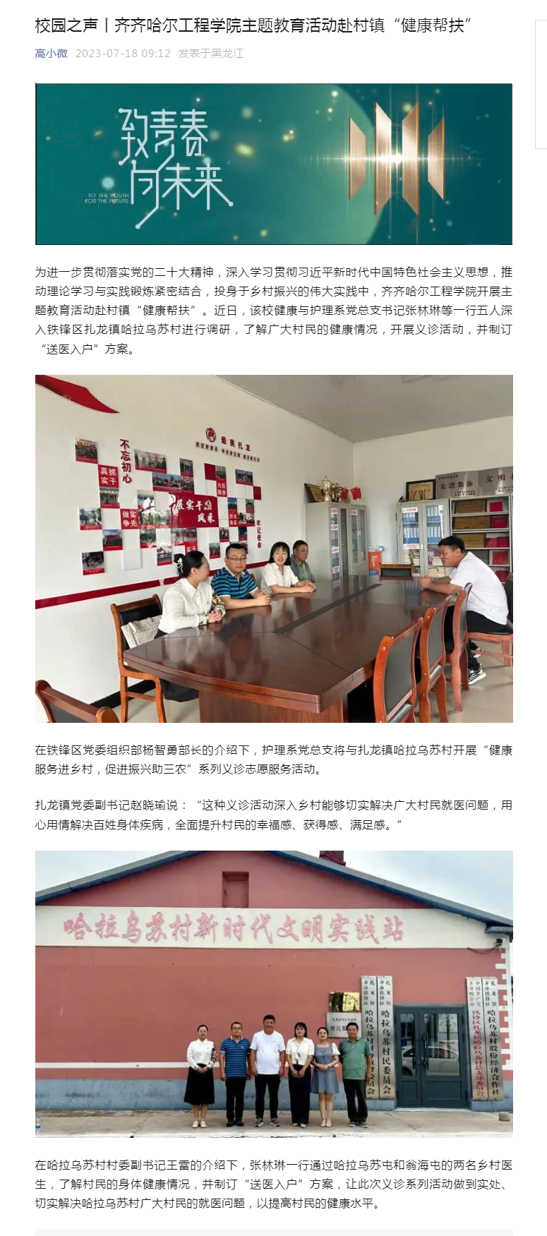 黑龙江高校广播(高小微公众号):永利23411集团官网主题教育活动赴村镇“健康帮扶”