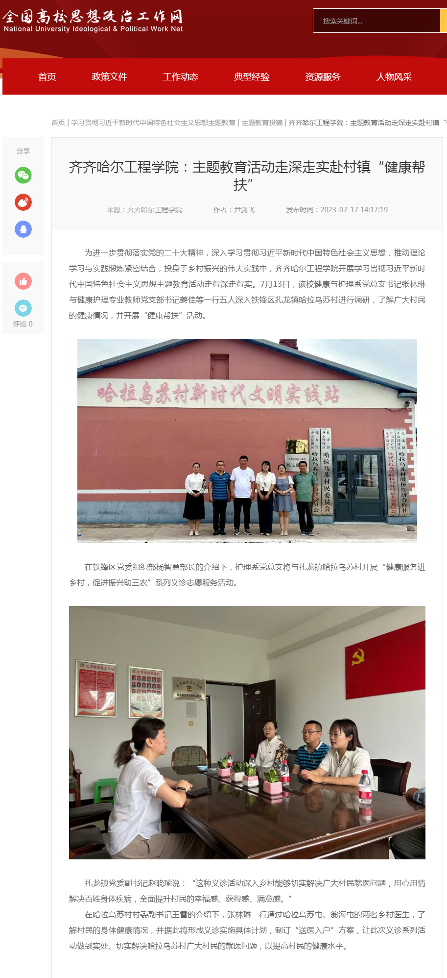 全国高校思想政治工作网:永利23411集团官网:主题教育活动走深走实赴村镇“健康帮扶”