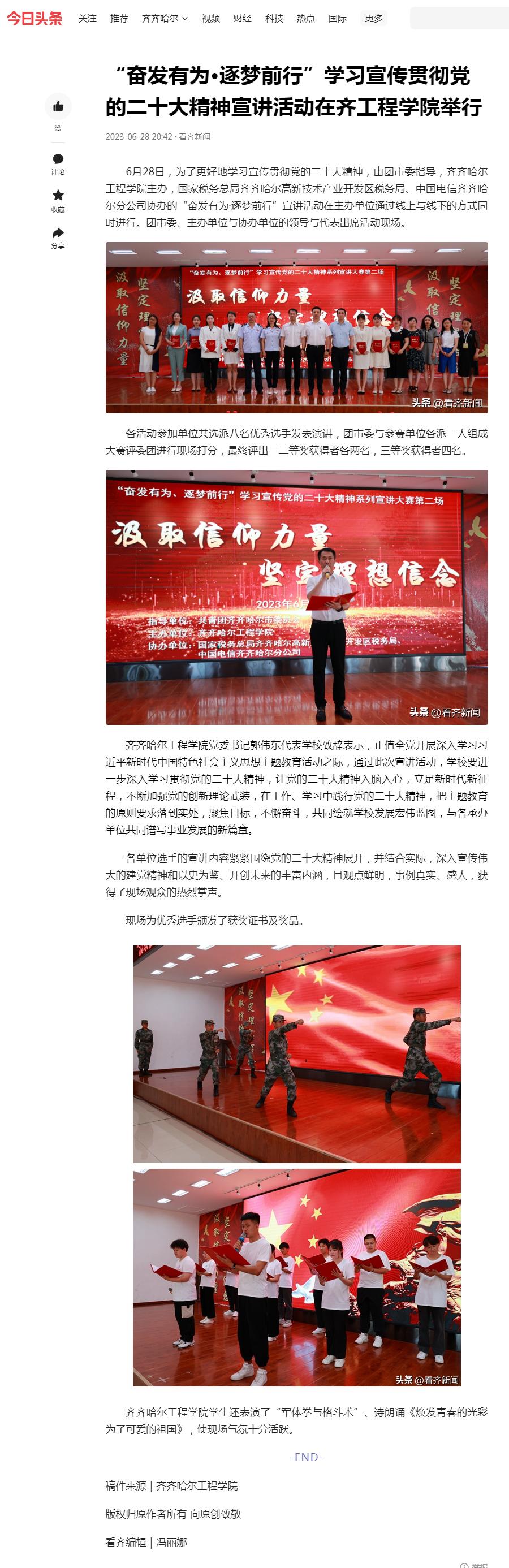 看齐新闻:“奋发有为•逐梦前行”学习宣传贯彻党的二十大精神宣讲活动在齐工程学院举行