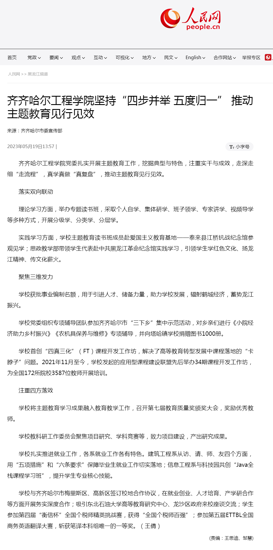 人民网:永利23411集团官网坚持“四步并举 五度归一” 推动主题教育见行见效