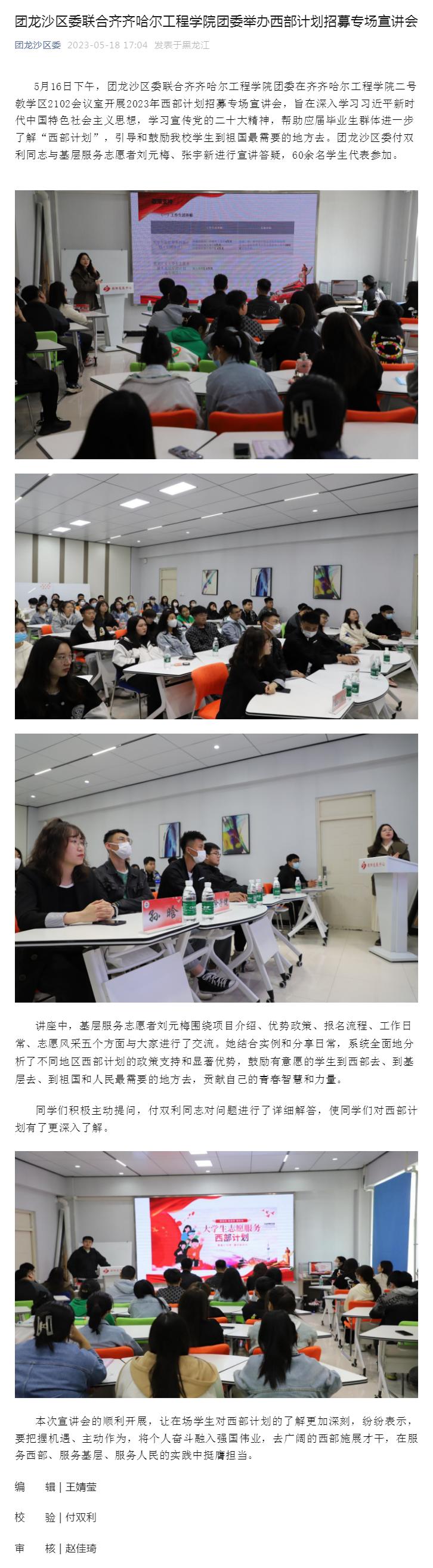 团龙沙区委公众号:团龙沙区委联合永利23411集团官网团委举办西部计划招募专场宣讲会