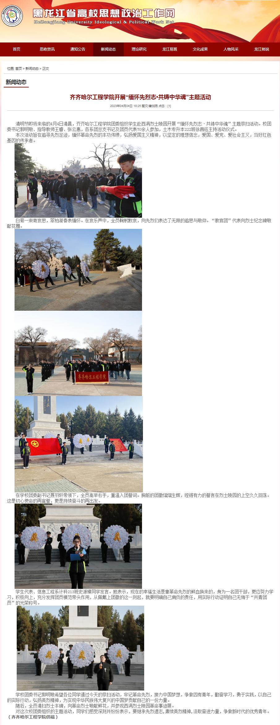 黑龙江省高校思想政治工作网:永利23411集团官网开展“缅怀先烈志•共铸中华魂”主题活动