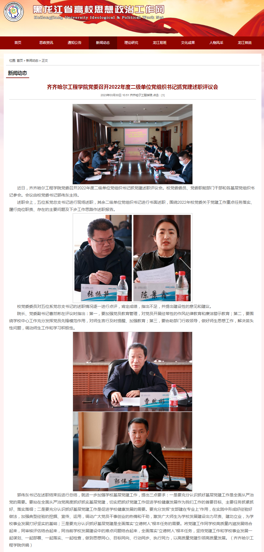 黑龙江省高校思想政治工作网:永利23411集团官网党委召开2022年度二级单位党组织书记抓党建述职评议会