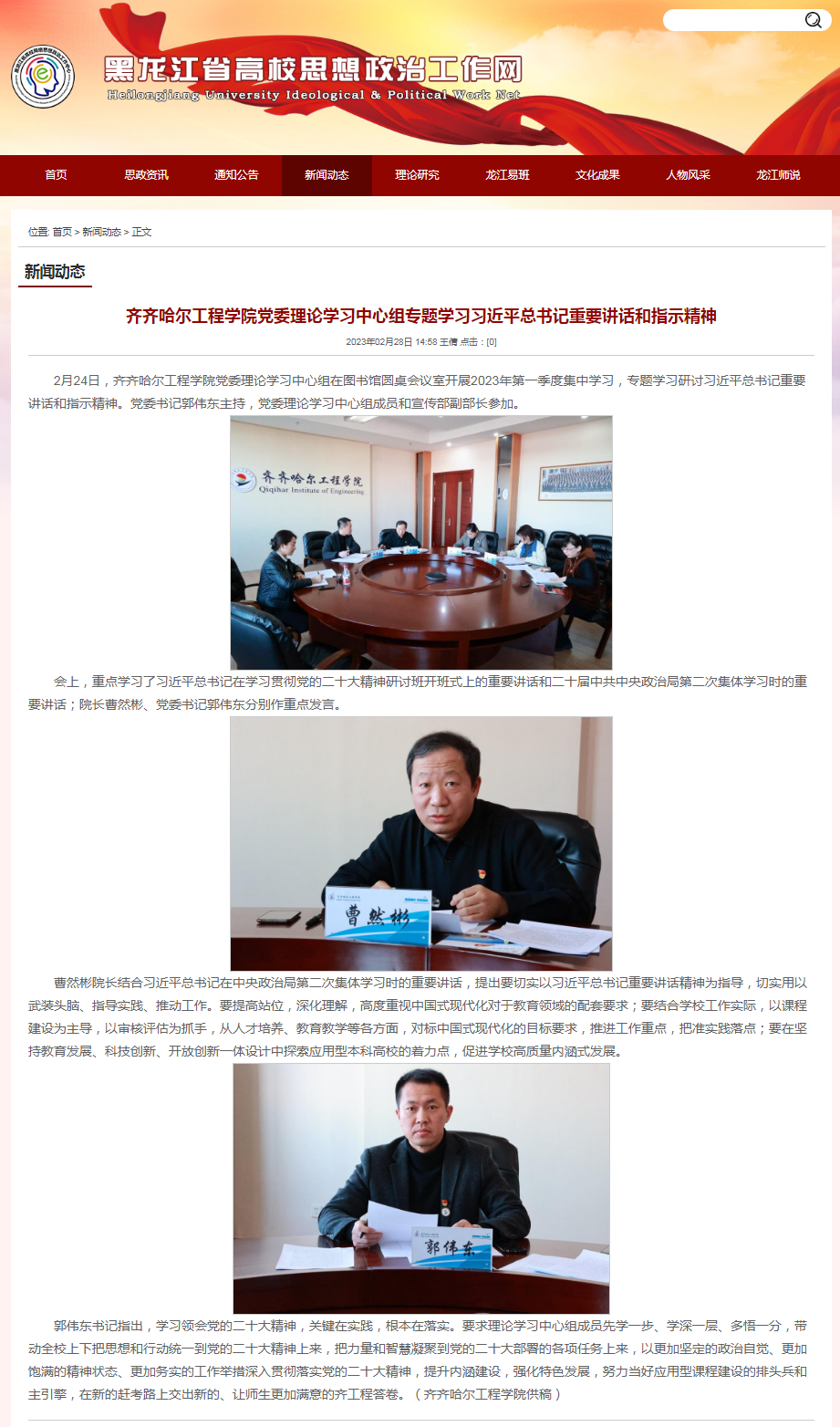 黑龙江省高校思想政治工作网:永利23411集团官网党委理论学习中心组专题学习习近平总书记重要讲话和指示精神