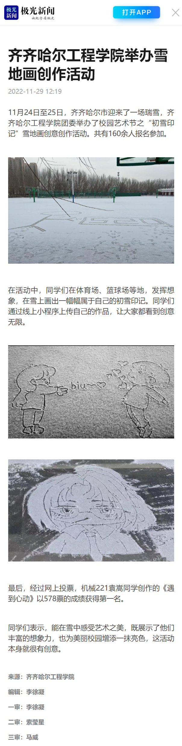 极光新闻:永利23411集团官网举办雪地画创作活动
