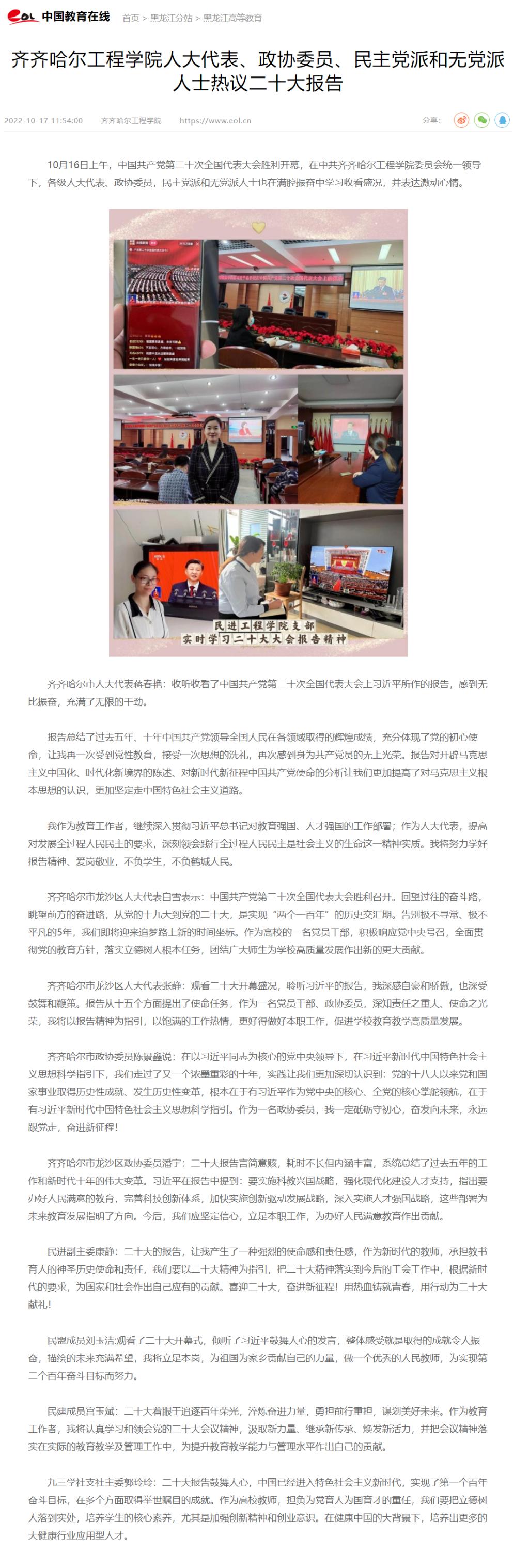中国教育在线:永利23411集团官网人大代表、政协委员、民主党派和无党派人士热议二十大报告