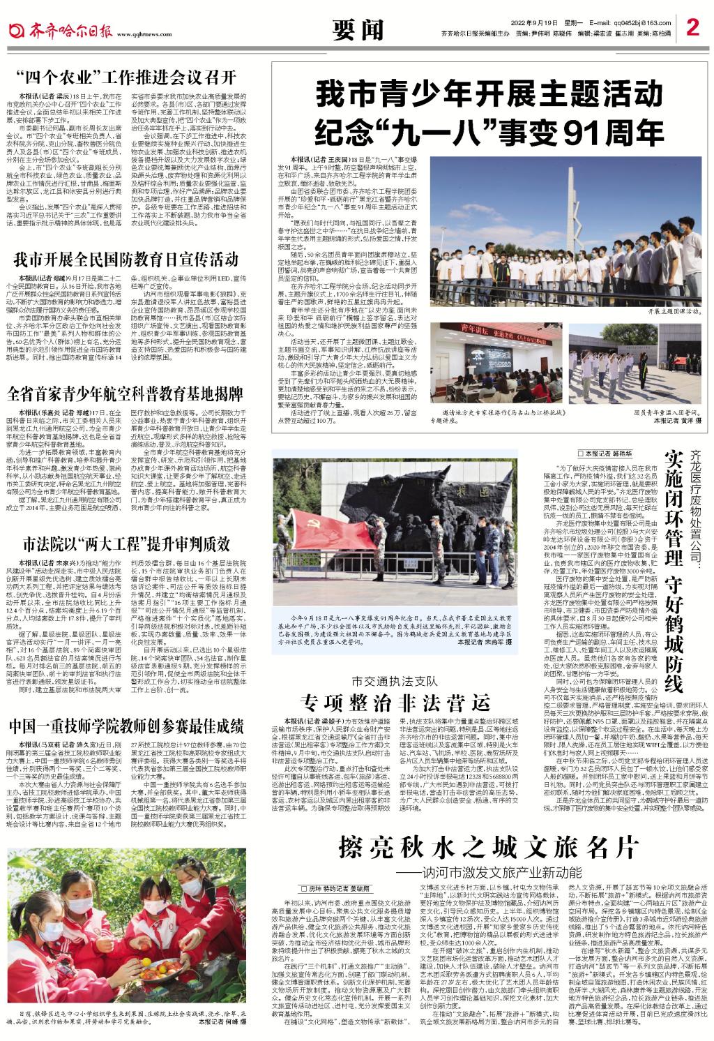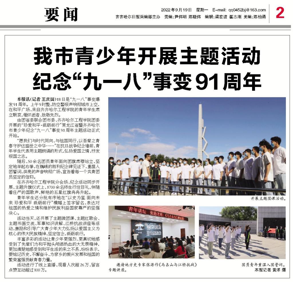 齐齐哈尔日报要闻版图文报道永利九一八主题团日活动