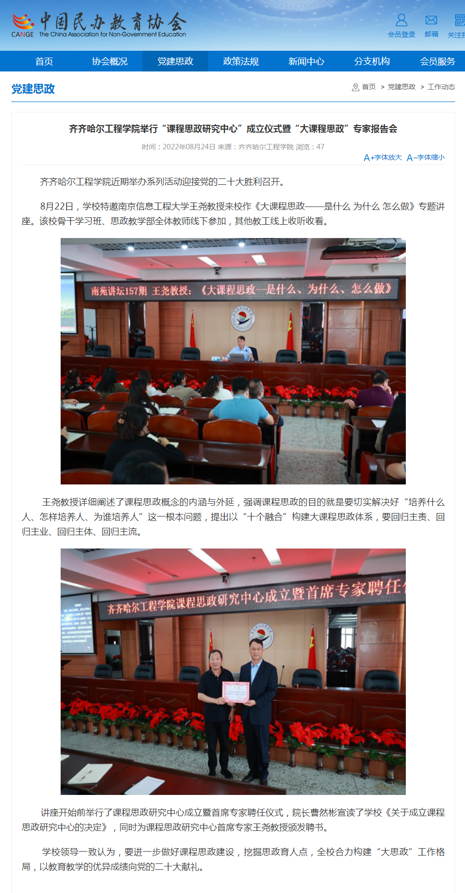 中国民办教育协会网:永利23411集团官网举行“课程思政研究中心”成立仪式暨“大课程思政”专家报告会