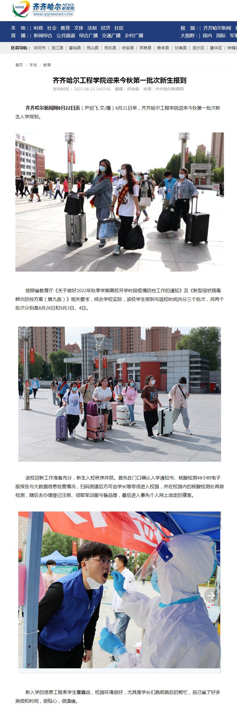 齐齐哈尔新闻网:永利23411集团官网迎来今秋第一批次新生报到
