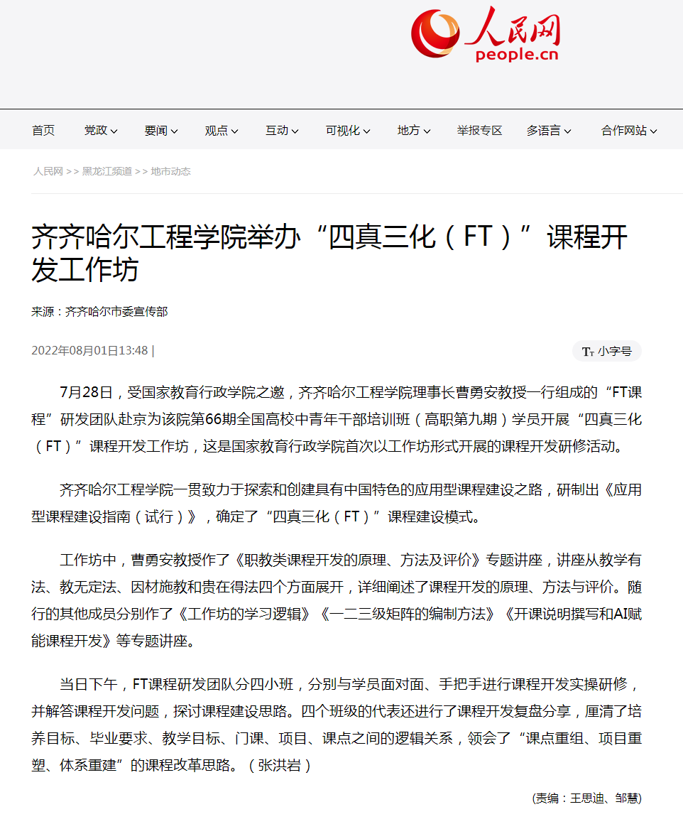人民网:永利23411集团官网举办“四真三化(FT)”课程开发工作坊