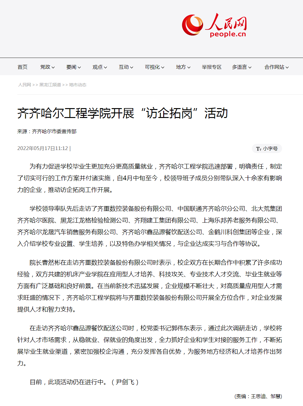人民网:永利23411集团官网开展“访企拓岗”活动
