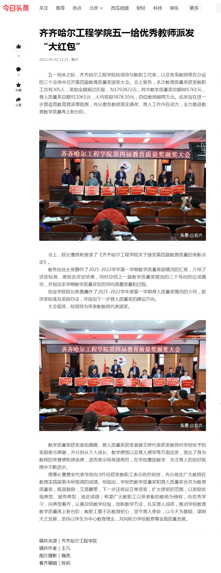 今日头条:永利23411集团官网五一给优秀教师派发“大红包”