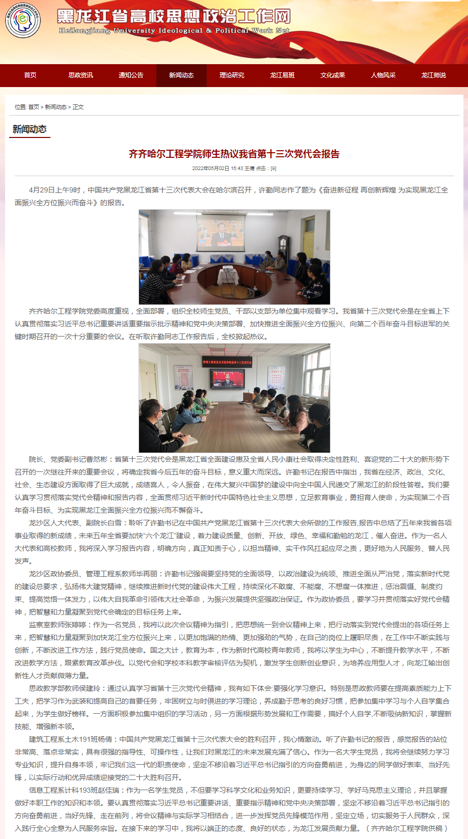 黑龙江省高校思想政治工作网:永利23411集团官网师生热议我省第十三次党代会报告