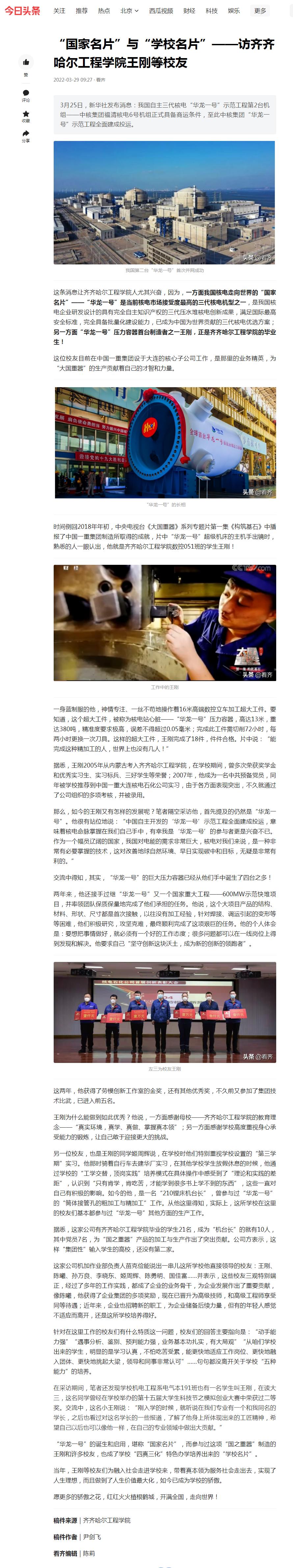 今日头条:“国家名片”与“学校名片”——访永利23411集团官网王刚等校友