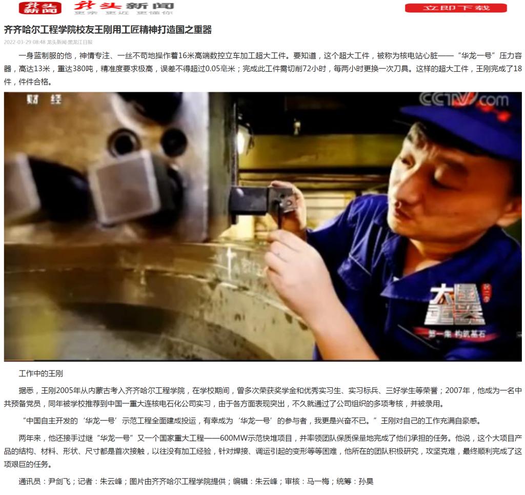 龙头新闻:永利23411集团官网校友王刚用工匠精神打造国之重器